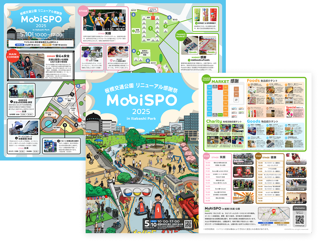 板橋交通公園で開催されたイベントにおいて、合同会社MMPRとして企画・主催・運営を行い、すべてのデザインを担当しました。